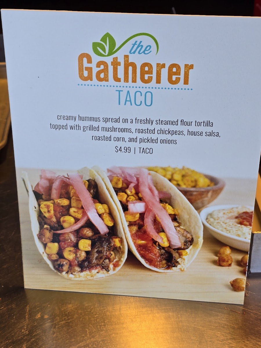 house-marinated tofu, roasted poblano salsa, roasted corn, cabbage, pico de gallo, avocado, lime wedge on our soft flour tortilla