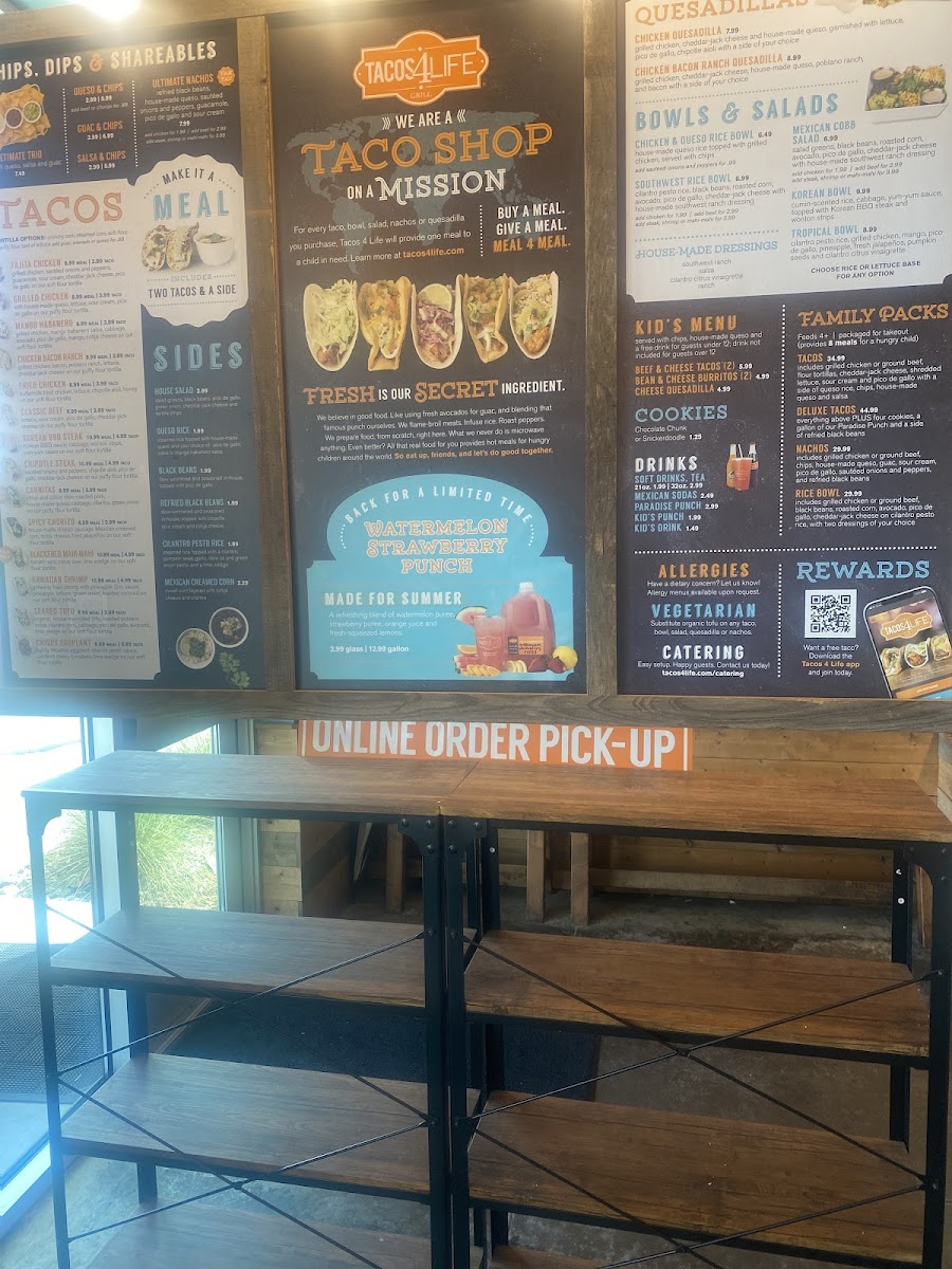 Highlights include the crispy Firecracker Shrimp and unique Steak and Blue Taco—each bursting with flavor. Customers rave about the friendly service and trendy atmosphere, making it a wholesome dining experience. Whether you're grabbing a quick bite or indulging in their Watermelon Strawberry Punch, Tacos 4 Life promises to leave a lasting impression. Don’t miss your chance to savor these culinary delights while making a difference!